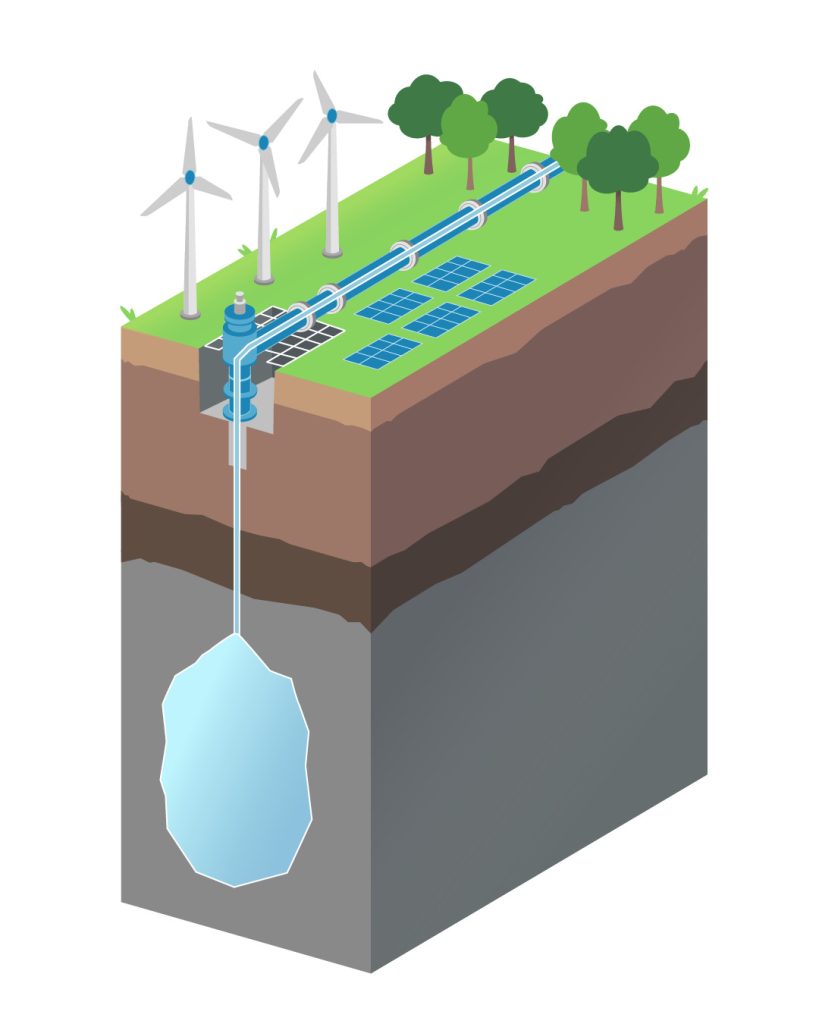 Hydrogen storage in salt caverns provides a secure and efficient method for long-term hydrogen storage. Using our VAhyper®, the gas is compressed into underground cavities formed through the process of solution mining. These salt caverns are ideal for storing the smallest gas molecules (H2), due to their gas-tight properties.